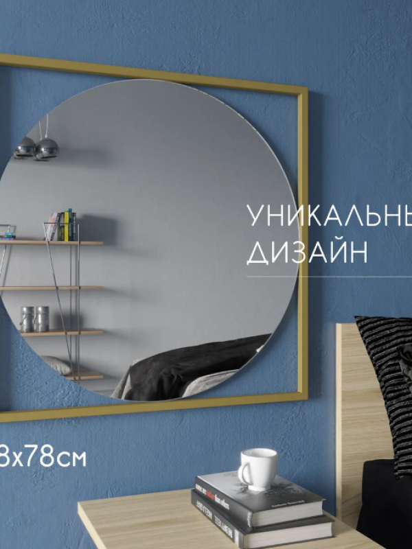 Зеркало «Image». Артикул GMZ-06-1/2/3 Оригинальное дизайнерское решение в виде круглого зеркала в квадратной металлической раме является настоящей находкой для трендовых сегодня сдержанных интерьеров. Оно способно менять визуальное восприятие пространства, делая помещение более просторным и светлым. Профиль рамы квадратный, выполнен из высококачественного металла покрытого порошковой краской, а само полотно изготовлено известным бельгийским производителем AGC, «зеркальная» продукция которого считается эталонной. Зеркало настенное. На тыльной стороне рамы присутствуют крепёжные элементы.Характеристики:– габаритные размеры рамы 780х780 мм, профиль – 20х20 мм; – диаметр зеркального полотна – 740 мм, толщина – 4 мм – вес – 7 кг; – устойчивая матовая порошковая окраска; – цвета – золотой, чёрный, белый; – саморезы для крепления к стене в комплекте; – гарантия – 1 год.